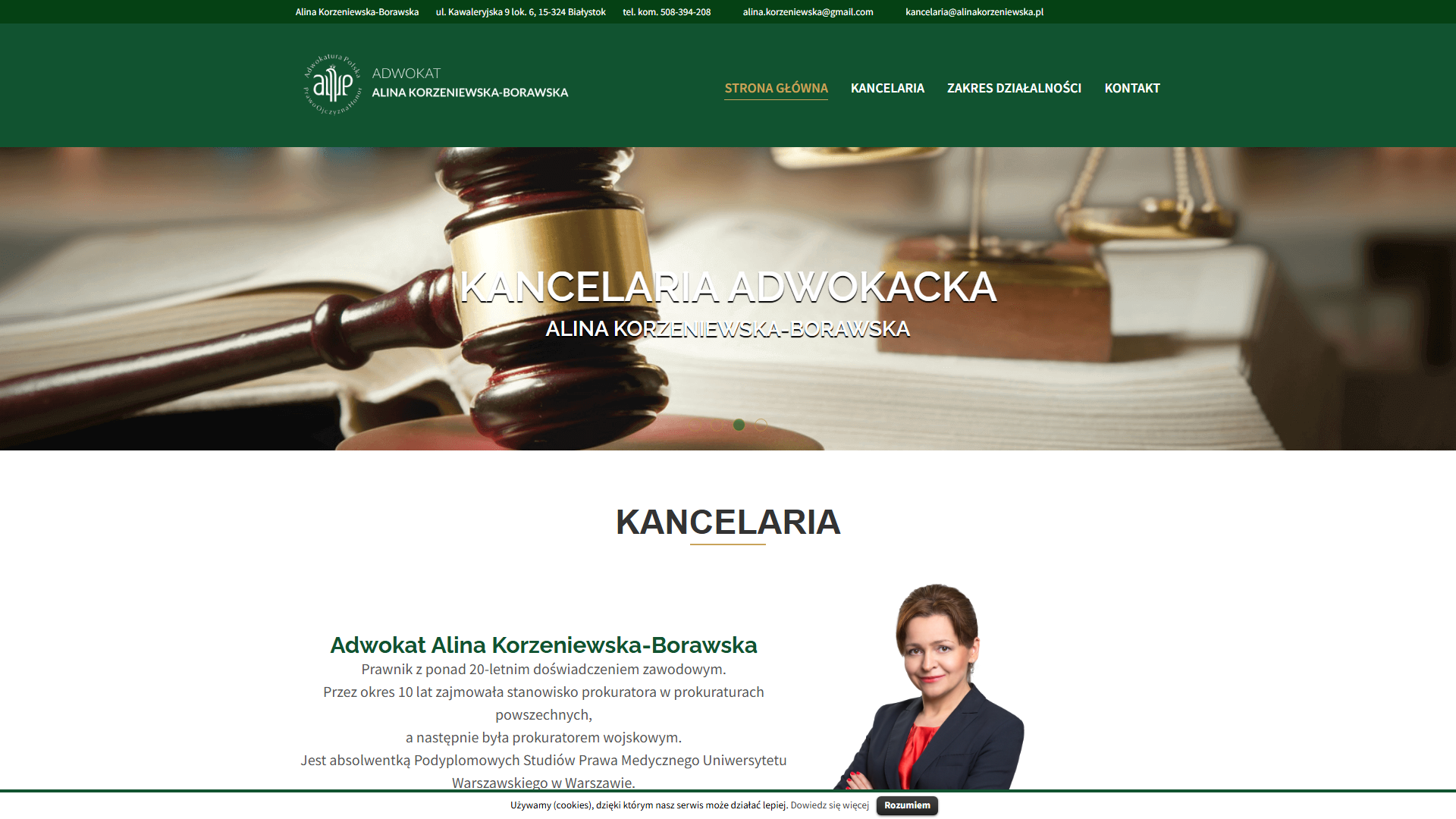 https://alinakorzeniewska.pl/ Tytuł: Adwokat Białystok – Kancelaria Adwokacka Jan Kowalski Szukasz rzetelnej pomocy prawnej w Białymstoku? Kancelaria Adwokacka Jan Kowalski to zespół doświadczonych adwokatów i aplikantów, specjalizujących się w: • Prawie rodzinnym (rozwody, alimenty, podział majątku, opieka naprzemienna) • Prawie cywilnym (umowy, odszkodowania, windykacja, spadki, testamenty) • Prawie karnym (obrona na etapie śledztwa, przed Sądem Rejonowym w Białymstoku i Sądem Okręgowym w Białymstoku) • Prawie gospodarczym i handlowym (spółki z o.o., umowy handlowe, prawo konkurencji) • Prawie nieruchomości (przekształcenia, służebności, odrolnienie gruntu) • Prawie pracy i ubezpieczeń społecznych (zwolnienia, mobbing, ZUS, odwołania od decyzji) • Ochronie danych osobowych (RODO, Audyt zgodności, umowy powierzenia) Dlaczego my? • Siedziba przy ul. Lipowej 10/4 w Centrum Białegostoku – blisko Sądu Rejonowego Białystok-Północ i Prokuratury Okręgowej • Kancelaria wpisana na listę Naczelnej Rady Adwokackiej oraz zarejestrowana w Ministerstwie Sprawiedliwości • Pierwsza konsultacja telefoniczna lub online GRATIS • Indywidualne podejście – analizujemy intencje (intent), frazy kluczowe i często pojawiające się pytania w Google Knowledge Graph • Optymalizacja semantyczna tekstów (BERT, RankBrain, Hummingbird), dzięki czemu nasza strona i artykuły pojawiają się wysoko w wynikach wyszukiwania Opinie klientów: – „Zaangażowanie, skuteczność i profesjonalizm. Polecam adwokata Janusza Kowalskiego!” – „Dzięki mediacji z prowadzoną przez kancelarię Panią Mecenas Magdaleną Brzozowską wygraliśmy sprawę o podział majątku.” Skontaktuj się już dziś: Tel. 85 123 45 67 E-mail: [email protected] Formularz: www.adwokatbialystok.pl/kontakt Kancelaria Adwokacka Jan Kowalski – Twoje bezpieczeństwo prawne w sercu Podlasia!dokserwis.pl