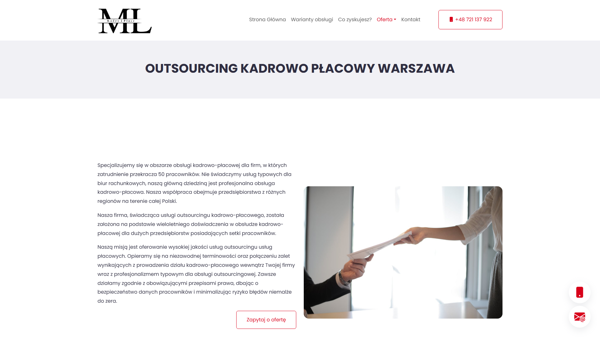 https://mlkadry.net/outsourcing-kadrowo-placowy-warszawa/ Outsourcing kadrowo-płacowy Warszawa – kompleksowa obsługa HR, płac i kadr dla małych, średnich i dużych przedsiębiorstw Szukasz sprawdzonego partnera w obszarze kadr i płac, rachunkowości oraz HR BPO w Warszawie (Śródmieście, Mokotów, Wola, Ursynów, Bielany)? Zaufaj ekspertom z HR Solutions Group – liderowi usług outsourcingowych w sektorze FMCG, IT, budownictwo, usługi medyczne i finanse. • Pełna obsługa płac: naliczanie wynagrodzeń, ZUS, PFRON, PPK, PPE, rozliczenia PIT, e-Płatnik, Płatnik ZUS, deklaracje CIT i VAT; • Kadry: tworzenie umów o pracę (UoP), zlecenia (UoZ), o dzieło (UoD), umów cywilnoprawnych, dokumentacja pracownicza, rejestracja w CEIDG i KRS; • Compliance i RODO/GDPR: monitoring zmian w Kodeksie pracy, audyt wewnętrzny, raportowanie fluktuacji, wskaźniki absencji i rotacji; • Systemy IT: Comarch Optima, Symfonia, SAP HCM, Oracle PeopleSoft, Microsoft Dynamics 365, Workday, Softgarden; • Narzędzia e-usług: ePUAP, e-deklaracje, e-Paragony, Płatnik, e-Cło, Portale Pracownicze, portal self-service; • Wdrożenia HRMS, szkolenia BHP, nadzór PIP, wsparcie ZUS, US, GUS, PIP, PFRON; • Doradztwo kadrowe: analiza kosztów pracowniczych, optymalizacja podatkowa, outsourcing prac tymczasowych i rekrutacja (vendor management). Dlaczego My? • Doświadczenie w obsłudze 200+ klientów (start-upy, spółki z o.o., S.A., sp. k.); • Elastyczne modele rozliczeń (time & material, stała opłata miesięczna, success fee); • Certyfikaty ISO 9001, ISO 27001, licencje Ministra Rodziny i Polityki Społecznej. Skontaktuj się teraz! Umów prezentację online lub odwiedź nasze biuro w Warszawie przy ul. Marszałkowskiej 100. HR Solutions Group – Twój partner w outsourcingu kadr i płac, payroll, benefitów oraz BPO w stolicy.ar-speed.pl