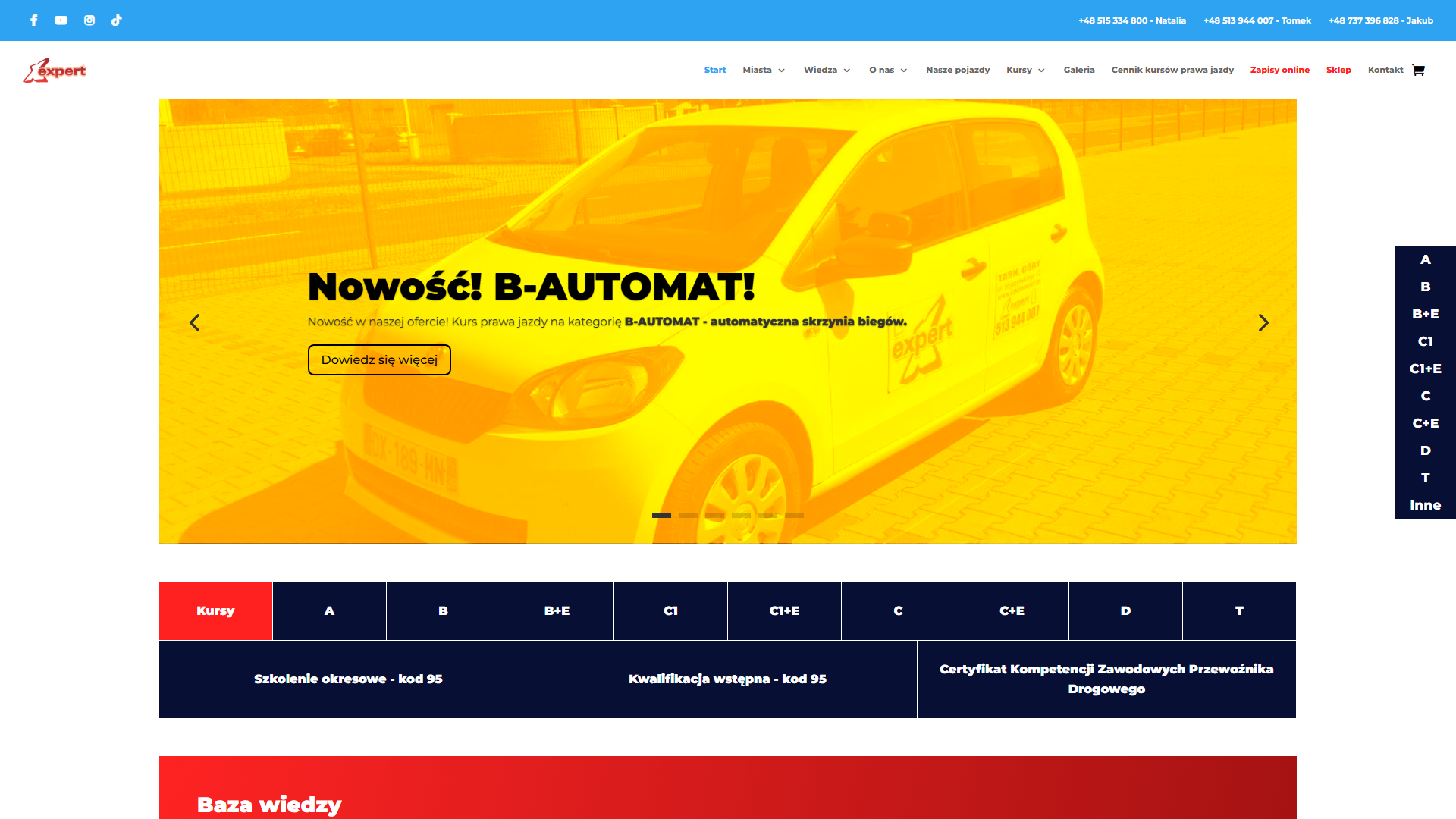 https://szkolaexpert.pl/ Nagłówek: Otwórz Drogę do Wolności – Zrób Prawo Jazdy w Sercu Śląska! Tekst reklamowy: Marzysz o samodzielnych wyjazdach samochodem po Tarnowskich Górach, Katowicach czy okolicznych trasach woj. śląskiego? Szkoła Nauki Jazdy „Auto-Master TG” w Tarnowskich Górach to gwarancja kompleksowego kursu prawa jazdy kategorii B, A, A1, B+E, a także jazd doszkalających przed egzaminem w WORD Katowice. Nasza placówka przy ul. Piastowskiej 10 to: • Nowoczesna sala wykładowa z tablicami multimedialnymi (e-learning, testy on-line) • Plac manewrowy z symulatorem pojazdów osobowych i dostawczych • Flota szkoleniowa: Toyota Yaris, Volkswagen Golf, Honda CB125 (A1) oraz przyczepy B+E • Wykwalifikowani instruktorzy – diagności, specjaliści z zakresu ruchu drogowego, transportu drogowego i OSK • Współpraca z Okręgową Stacją Kontroli Pojazdów, Inspekcją Transportu Drogowego, Auto-Moto Klubem Dlaczego warto wybrać naszą szkołę? 1. 100% zdawalność 2023/2024 – najlepsze wyniki w regionie tarnogórskim i bytomskim. 2. Indywidualne programy szkoleniowe, zajęcia teoretyczne w formie webinariów i platformy e-learning. 3. Elastyczny grafik: wieczorne i weekendowe kursy, jazdy doszkalające w Gliwicach, Zabrzu, Chorzowie. 4. Bezpłatne korepetycje i doradztwo po praktyce jazdy – m.in. technika eco-driving, zasady BPM i ADR. 5. Możliwość rozłożenia płatności na raty, promocje „Przyjdź z przyjacielem” i rabaty dla uczniów szkół ponadpodstawowych z powiatu tarnogórskiego. Zarezerwuj kurs już dziś! – Wypełnij formularz na stronie auto-master-tg.pl – Zadzwoń: 32 — 720 — 00 00 – Odwiedź nas na Facebooku i Google My Business Dołącz do grona zmotoryzowanych absolwentów z Tarnowskich Gór i okolic. Z „Auto-Master TG” zdobędziesz umiejętności i pewność siebie, by bezpiecznie ruszyć w każdą trasę – od centrum Tarnowskich Gór przez DTŚ i A1 aż po autostrady A4!szkolanaukijazdy.bytom.pl