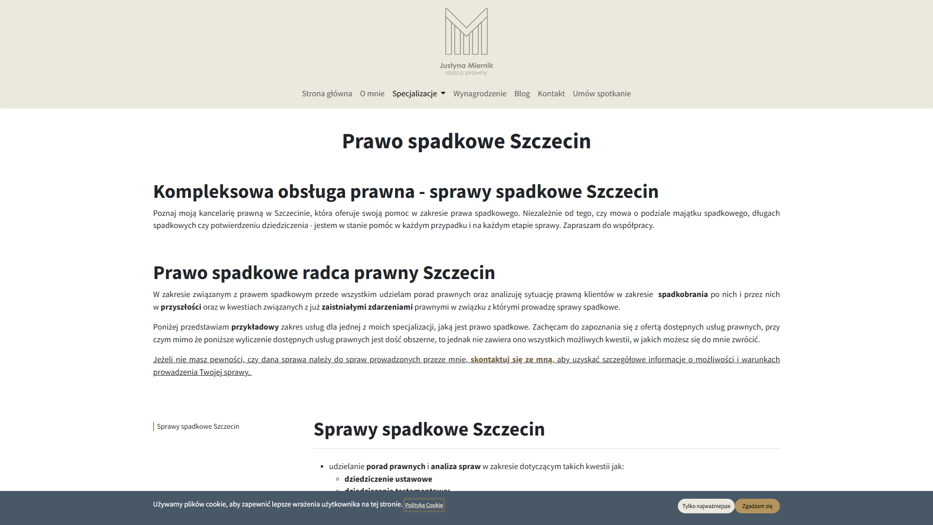 https://www.kancelariamiernik.pl/sprawy-spadkowe-szczecin Tytuł: Twoje Prawo Spadkowe w Szczecinie – Kancelaria LEX POMORZE Skrócony opis: Kompleksowa pomoc prawna w sprawach spadkowych – od analizy testamentu po postępowanie spadkowe przed Sądem Rejonowym Szczecin-Centrum. Zaufaj doświadczonym adwokatom i radcom prawnym z LEX POMORZE! Treść teaserowa: Masz wątpliwości co do dziedziczenia majątku po bliskich? Sprawy o zachowek, dział spadku lub odrzucenie spadku często wiążą się z analizą art. 924–1085 Kodeksu cywilnego, procedurą w Rejestrze Spadkowym i formalnościami u notariusza. Kancelaria Prawna LEX POMORZE w Szczecinie (ul. Wały Chrobrego 12) oferuje: • Porady prawne i konsultacje online w zakresie prawa spadkowego (testamenty, zapisy, darowizny) • Reprezentację przed Sądem Rejonowym Szczecin-Centrum i Urzędem Skarbowym (podatek od spadków i darowizn) • Sporządzanie pism procesowych, wniosków o stwierdzenie nabycia spadku, notarialne poświadczenie dziedziczenia • Obsługę spraw międzynarodowych (Konwencja haska, Europejski nakaz spadkowy, prawo prywatne UE) Dlaczego my? • Zespół adw. Anny Kowalskiej i radcy prawnego Jana Nowaka – eksperci od prawa spadkowego w woj. zachodniopomorskim. • Znajomość lokalnych realiów: Wały Chrobrego, Zamek Książąt Pomorskich, biura Urzędu Skarbowego w Szczecinie-Śródmieście. • Indywidualne podejście, szybka odpowiedź, etyczne doradztwo. Nie czekaj – ochroń swoje prawa i majątek już dziś! Zadzwoń: 91 444 55 66 Napisz: [email protected] Umów darmową konsultację (osobiście lub online).jazdy-rawo.pl