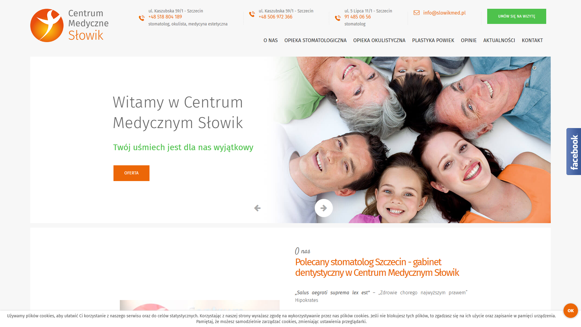 https://www.slowikmed.pl/ Marzysz o zdrowym, pełnym blasku uśmiechu? Dentysta Szczecin – klinika stomatologiczna StomaSmile w samym sercu Szczecina (ul. Jana Pawła II 24) to nowoczesne centrum stomatologii ogólnej i estetycznej. Oferujemy: • Stomatologia estetyczna – licówki porcelanowe IPS e.max, wybielanie Beyond Polus, bonding kompozytowy • Implantologia – implanty Nobel Biocare, Straumann, BioHorizons z regeneracją kości (GBR) i podniesieniem dna zatoki szczękowej (sinus lift) • Ortodoncja – nakładki Invisalign, aparat stały Damon, ortodoncja lingwalna • Endodoncja pod mikroskopem – leczenie kanałowe z użyciem endometru, ultradźwięków i mikrosilników NSK • Protetyka CAD/CAM – korony ceramiczne Procera, mosty cyrkonowe, protezy szkieletowe Multilink • Chirurgia szczękowa – ekstrakcje, zabiegi resekcji wierzchołka, chirurgia periodontologiczna • Profilaktyka i higiena – piaskowanie Air-Flow, skaling, fluoryzacja, profilaktyka próchnicy u dzieci Dlaczego warto wybrać nasz gabinet stomatologiczny w Szczecinie (Pogodno, Niebuszewo, Centrum)? • Tomografia CBCT, radiowizjografia 2D/3D, wewnątrzustny skaner 3Shape TRIOS • Certyfikowani specjaliści: dr Anna Kowalska (PTSt), dr Piotr Nowak (ICOI), dr Marta Wiśniewska (EAO) • Komfort pacjenta – sedacja wziewna, znieczulenie komputerowe The Wand, bezpłatne konsultacje wstępne • System e-rejestracji online, elastyczne godziny (soboty i niedziele), ratunkowe dyżury dentystyczne Umów wizytę już dziś! Telefon: 91 123 45 67 Website: www.stomasmile-szczecin.pl Dentysta Szczecin – Twój uśmiech w rękach ekspertów!wloczega.pl